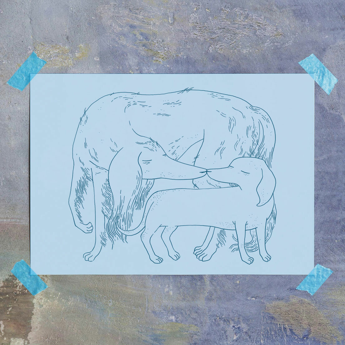 This very limited edition art print of an afghan hound and his dachshund buddy are now available for you and your canine loving friends.